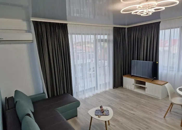 Staying at Crystal Sands Residence Eforie Nord, guests can relax on a terrace merely a 5-minute walk from Plaja Debarcader.